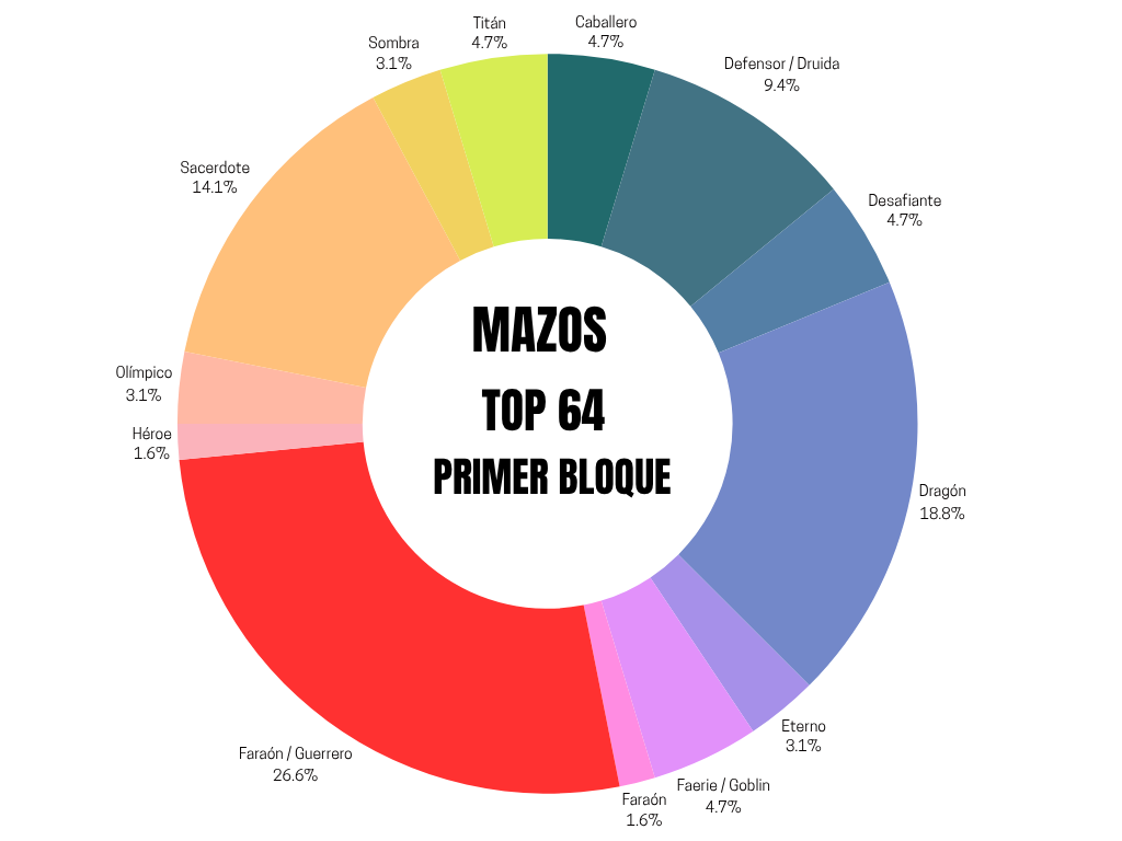 Ya pero el top 64 tanto el mazo Defensor/Druida como el de sacerdote Sacerdote perdieron mucha fuerza cuando empezó el corte de los mejores jugadores del evento, mientras que el conjunto de Faraón/ Guerrero se mantenía firme como uno de los más desafiantes de este aniversario, y ya para esta instancia algunos de los mazos empezaron a desaparecer .