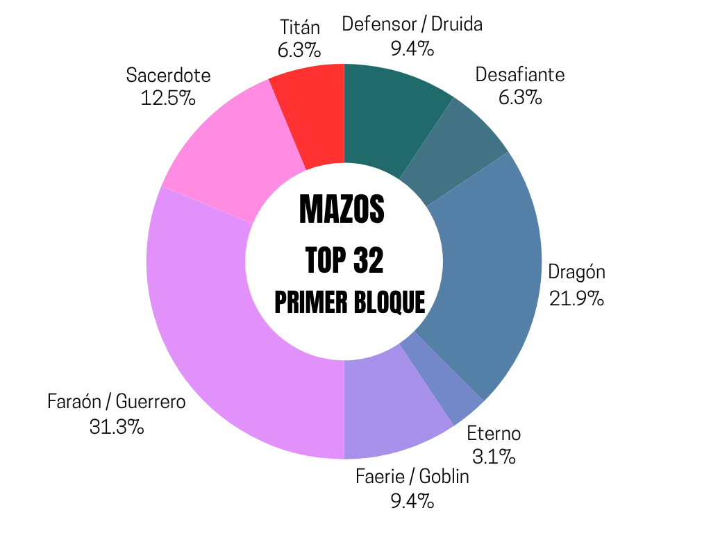 Ya para el top 32 la rivalidad seguía concentraba en tres mazos Sacerdote, Dragón y Faraón/ Guerrero. Para este punto los mazos que no estaban dentro de estos bloques empezaron a desvanecerse mientras avanzaba el torneo, pero el mazo Defensor/Druida se mantuvo vigente en su porcentaje.