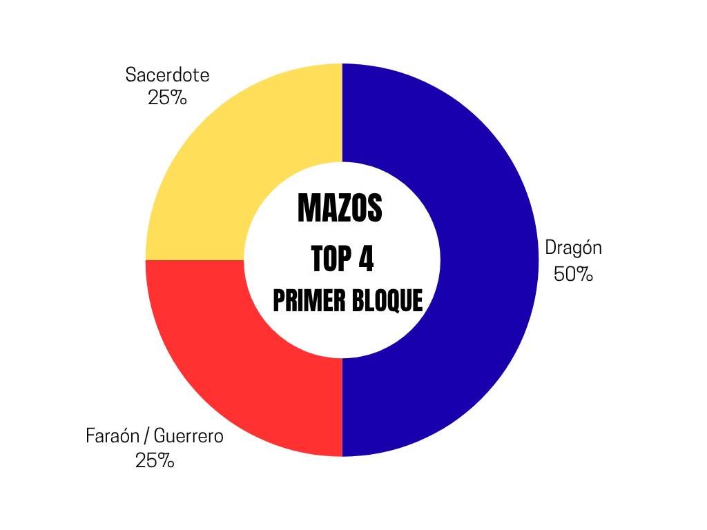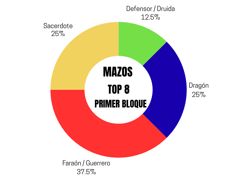 Al final ya para el top 4 solo se quedaron los mejores, dejando fuera el mazo de Defensor/ Druida quedando solo las razas que se mantuvieron fuertes dentro de este torneo de aniversario Sacerdote, Dragón y Faraón/ Guerrero