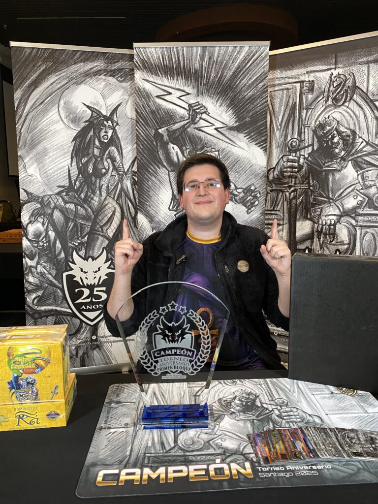 “Mitos y Leyendas celebró sus 25 años con un torneo épico del formato Primer Bloque en el Hotel Almacruz de Santiago, reuniendo a más 600 jugadores, ilustradores y leyendas del juego.”