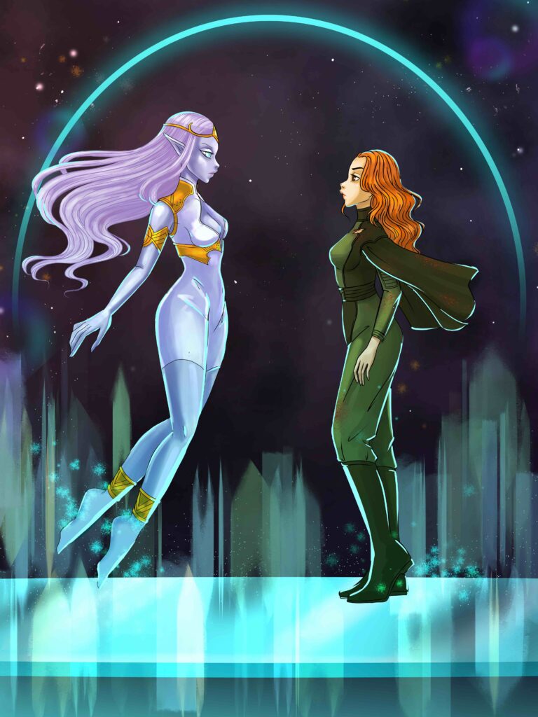 No tardan en conocer a estos nuevos aliados: Nyssara es la última monarca de los Luthariel, una raza de criaturas celestiales que alguna vez danzaron entre los filamentos cósmicos, tejiendo rutas entre los mundos como las hadas tejen sus hechizos en los bosques antiguos. Sin embargo, su reino ha caído. Su civilización, otrora brillante como un enjambre de luciérnagas en el vacío, se marchita lentamente. Su pueblo, los Hijos de la Luminiscencia, está condenado a la extinción.
