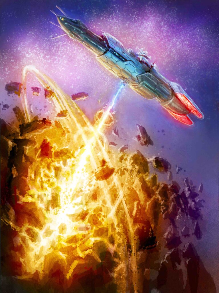 Después de unos días, en el círculo exterior, donde el Sol ya es memoria y el frío suena como vidrio, El Fantasma fue sorprendido por una andanada que no anunciaba bandera ni origen: puro cálculo homicida. Las naves escolta cayeron primero, luces que se apagan sin ruido, y luego las mechas de cubierta, arrancados de sus rieles como juguetes.