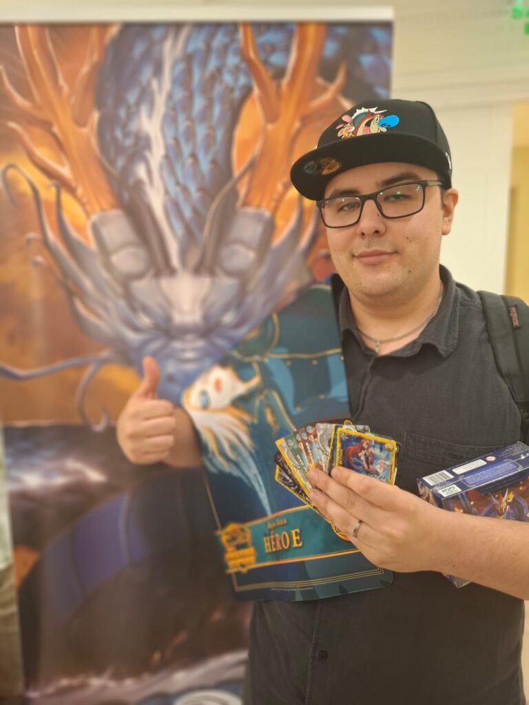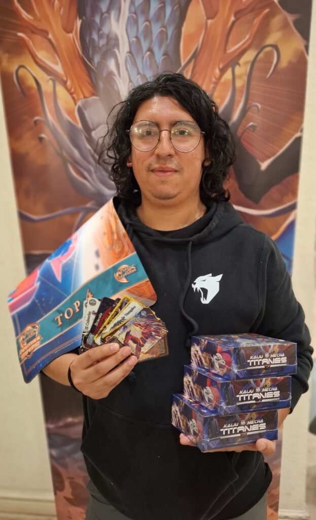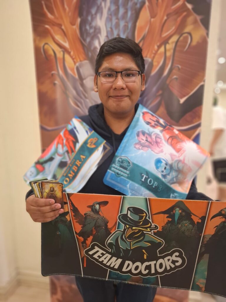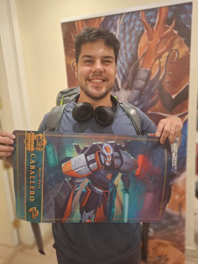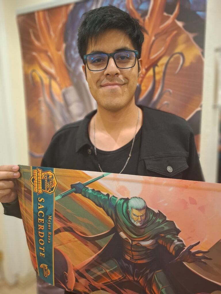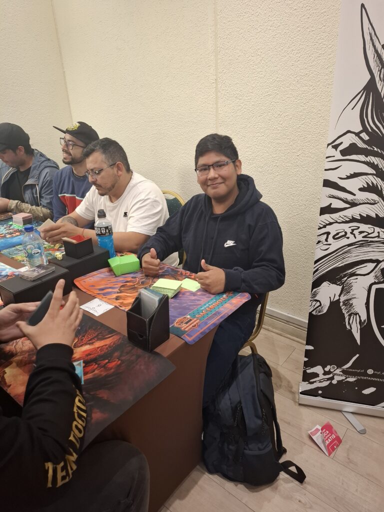 Dicho amigo se trata de Carlos Flores Inaipil, quien, jugando un mazo Guerrero, derrotó a Branko en la final luego de un poco más de media hora de duelo y una larga jornada de partidas.