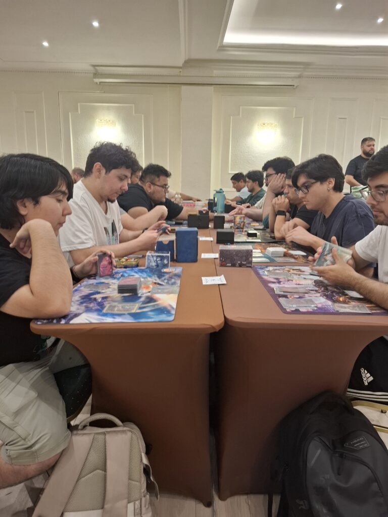 La ronda 1 fue lanzada y, durante media hora, el silencio era casi absoluto; solo se escuchaba un pequeño murmullo de los jugadores explicando sus cartas y el “¡JUEZ!” que resonaba de repente. Con cada jugador que terminaba, el ruido volvía nuevamente, hasta transformarse en un bullicio de charlas entre frustración y alegría.