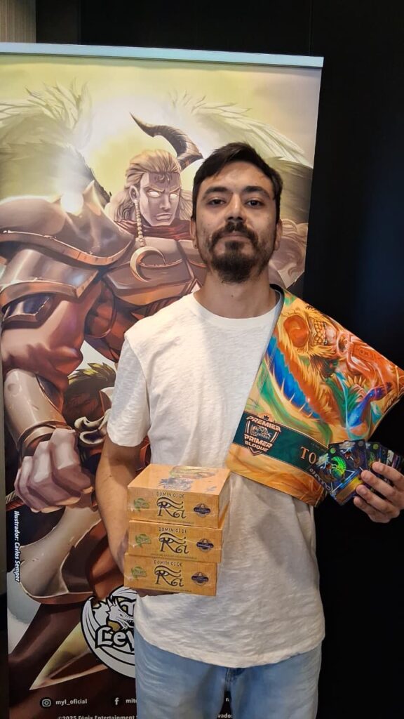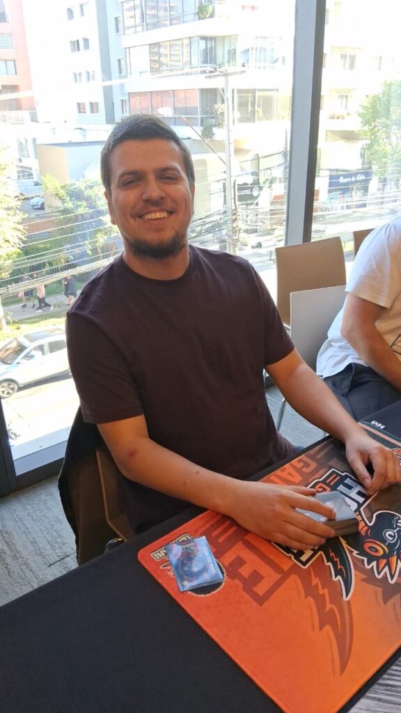 Nicolás Flores llevando el mazo Dragón que durante toda la jornada de premier de Primer Bloque se mantuvo al frente, pero algo pasó, la estrategia de Andrés con el mazo de Faraón/ Guerrero se impuso ante la predominancia del mazo Dragón rompiendo en la final el meta y la tendencia que se llevaba en el torneo Premier de Viña del Mar.