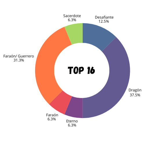 Ya para la ronda donde se disputaba el top 16 la raza Dragón empezó a arrasar con lo demás mazos, siendo Faraón/ Guerrero el único conjunto en hacerle frente, mientras que dentro de este top se vio un triple empate por la supervivencia entre las razas Sacerdote, Faraón y Eterno.