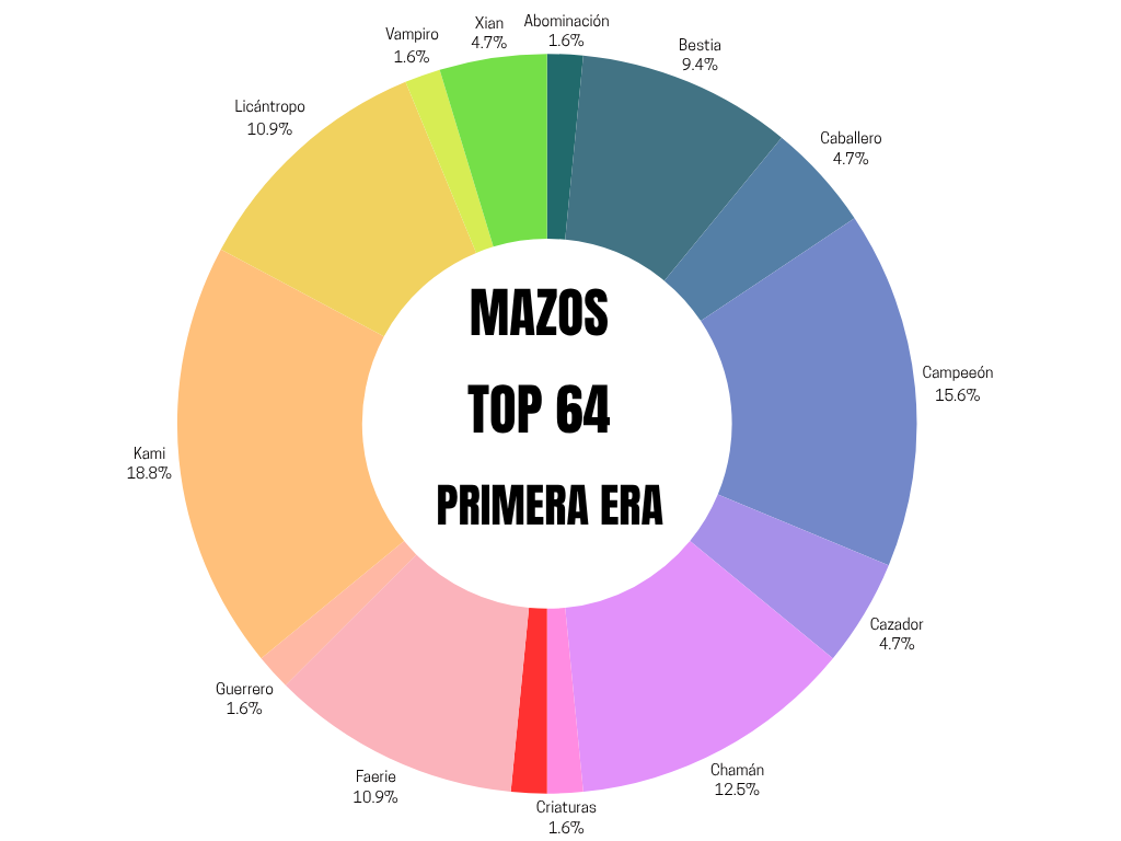 Ya para el corte del Top 64 las dos grandes tendencias se mantuvieron, pero algunas razas empezaron a variar como por ejemplo el conjunto Licántropo que relegado por el mazo Chamán que mostro un alto nivel de supervivencia para estos torneos, mientras que la raza caballero disminuía.