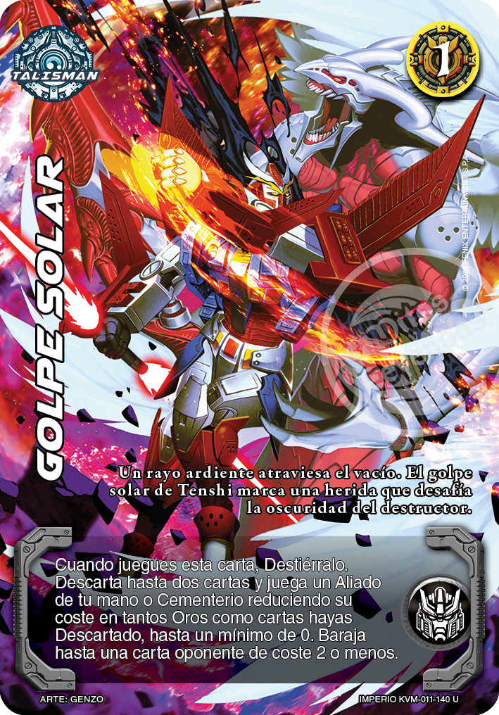 Golpe Solar: Esta carta ofrece un potencial de explotar jugadas poderosas de forma impresionante, creando combinaciones que por pocos Oros pueden ser devastadoras. El hecho de descartar dos cartas a algunos mazos les puede doler mucho y otros incluso pueden aprovecharlo, pero incluso si sólo descartas una carta puedes darle “exhumar” a un Aliado de tu cementerio y hacer un removal gratis en el proceso. Nos recuerda la potencia que han tenido cartas como Niten o Maho no Meiso en el pasado, pero consumiendo cartas de la mano en vez de entregarlas como sus antecesores.