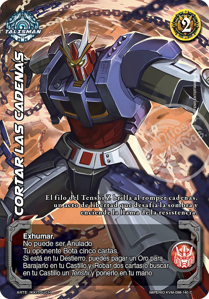 Cortar las cadenas: Nos recuerda al amado y odiado Cuervo Nocturno, capaz de pegar 10 cartas sin poder ser anulado y tiene otro plus que no tiene Cuervo, el poder recuperarse desde el Destierro para hacerlo una fuente de daño infinita si logras llevar el duelo al juego tardío, ideal para los que les gusta ganar por daño directo en vez de atacar.