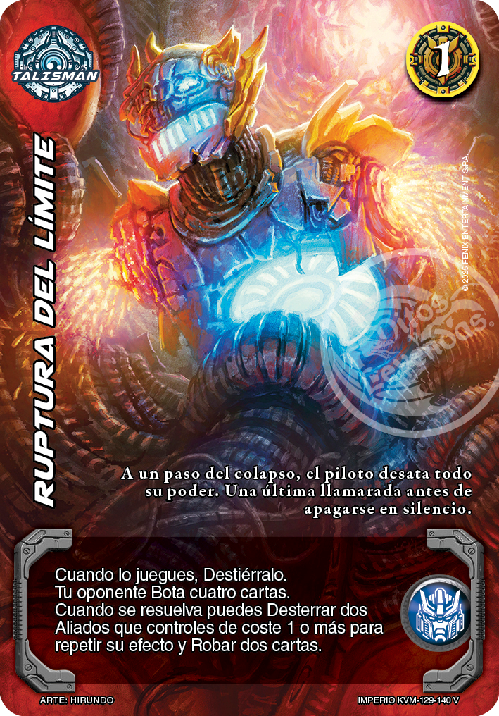 Ruptura del Límite: Esta carta es un finiquitador por excelencia, por sólo un Oro puede pegar hasta 8 cartas al Castillo oponente, por lo que juntar más de un Ruptura ayudado de plaga de Aliados como Yelmo Mambrino y León Indiferente pueden ser suficiente para finiquitar partidas. Si no finiquita la partida, al menos puedes pegar 8 y Robar dos cartas por un solo Oro, nada mal para un aggro.