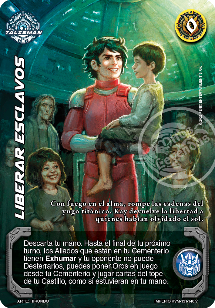 Liberar Esclavos: Una carta pensada para armar mazos en torno a ella, arriesgados pero muy entretenidos. Te da la opción de quedarte sin mano por el turno y empezar a jugar cartas desde tu Cementerio y del tope de tu Castillo ideal para jugar muchas cartas de coste 0 y explotar tu mazo en un mismo turno. Además aunque no ganes ese turno, su efecto dura hasta el final de tu próximo turno y no te pueden controlar cementerio así que puedes seguir presionando y combeando.