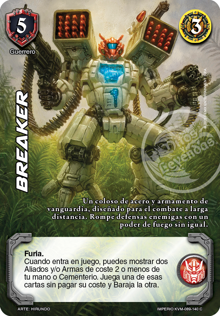 Nos toca ir a las cartas de frecuencia cortesano y vasallo, Aliados pensados en el lanzamiento y que también aporten en las estrategias, en primer lugar, Breaker un Aliado muy fuerte coste 3 fuerza 5 que te permite reclutar un Aliado o un Arma de Coste 2 o menos desde tu mano o cementerio, además como te permite mostrar también el tío garfio se pone contento. Sin duda un Aliado que quiero ver en mi pool del sellado.