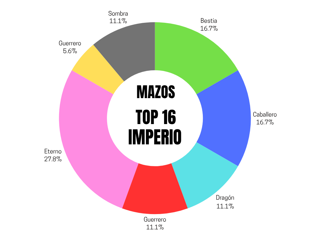 Con toda la intensidad de este torneo el mazo tech de la jornada para la ronda del top 16 se concentraba en la raza eterno con un empate del 16. 7 % entre los conjuntos Bestia y Caballero