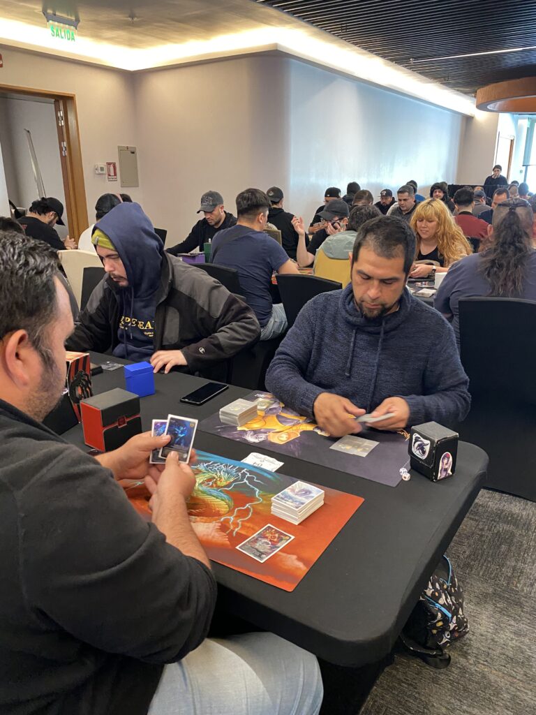El sector destinado al formato Imperio se llenó rápidamente de jugadores, en parte porque compartían espacio con los jugadores de Furia Extendida. Todos estaban afinando sus mazos, cada uno con su propia estrategia, con una mezcla de nostalgia y expectación.