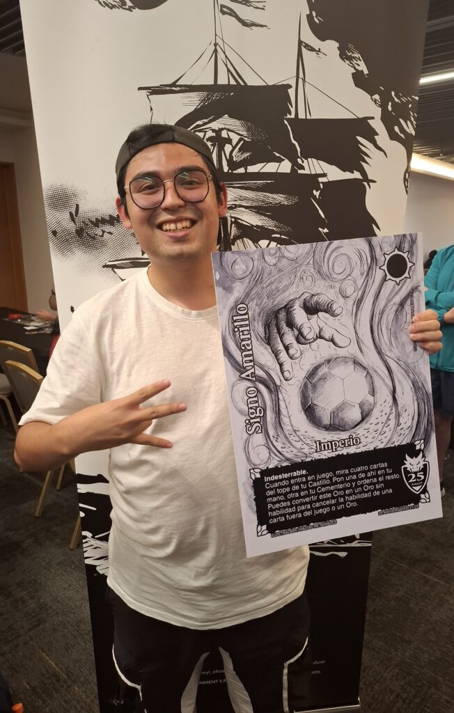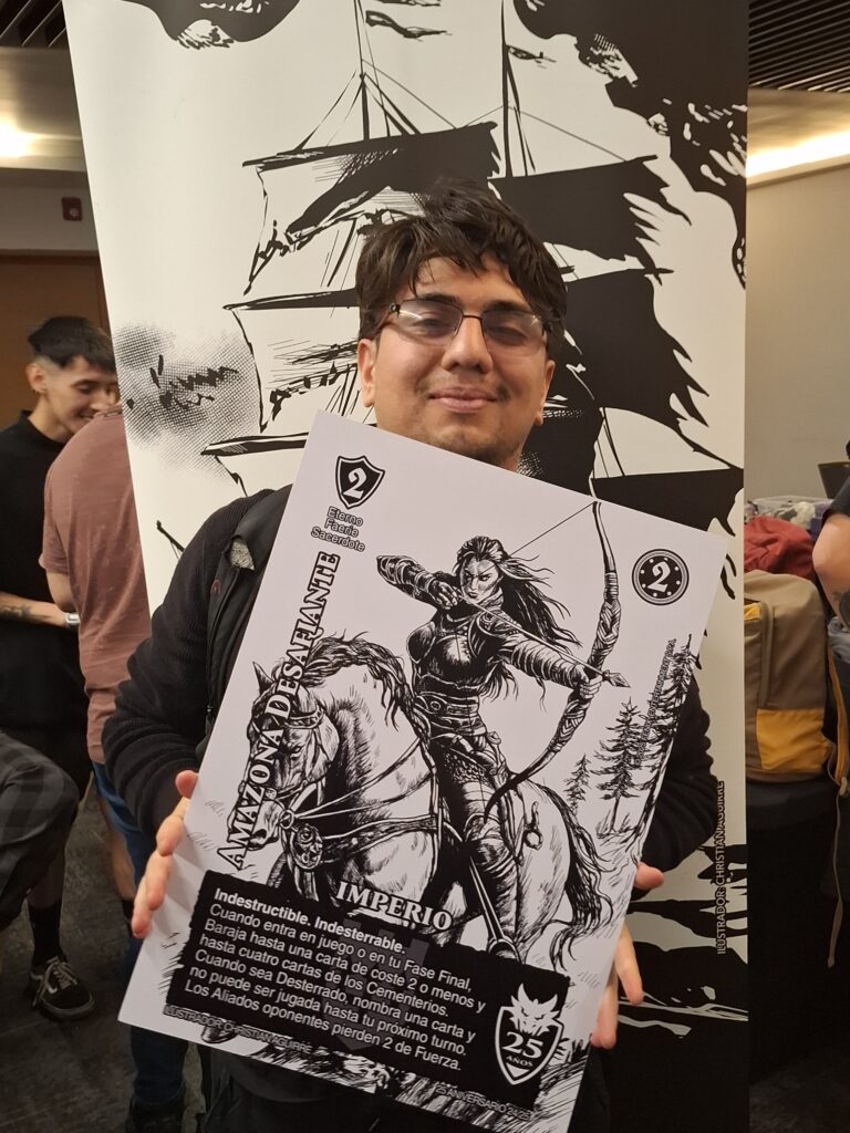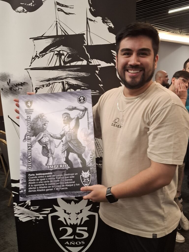 Además de esos jugosos premios, se sortearon las cartas promocionales de aniversario del formato de Imperio, pero en tamaño jumbo. Así que muchos fans del formato y de Mitos y Leyendas que no alcanzaron a topear o que no podían ganar en los relámpagos tuvieron la posibilidad de llevarse algo de este gran evento.