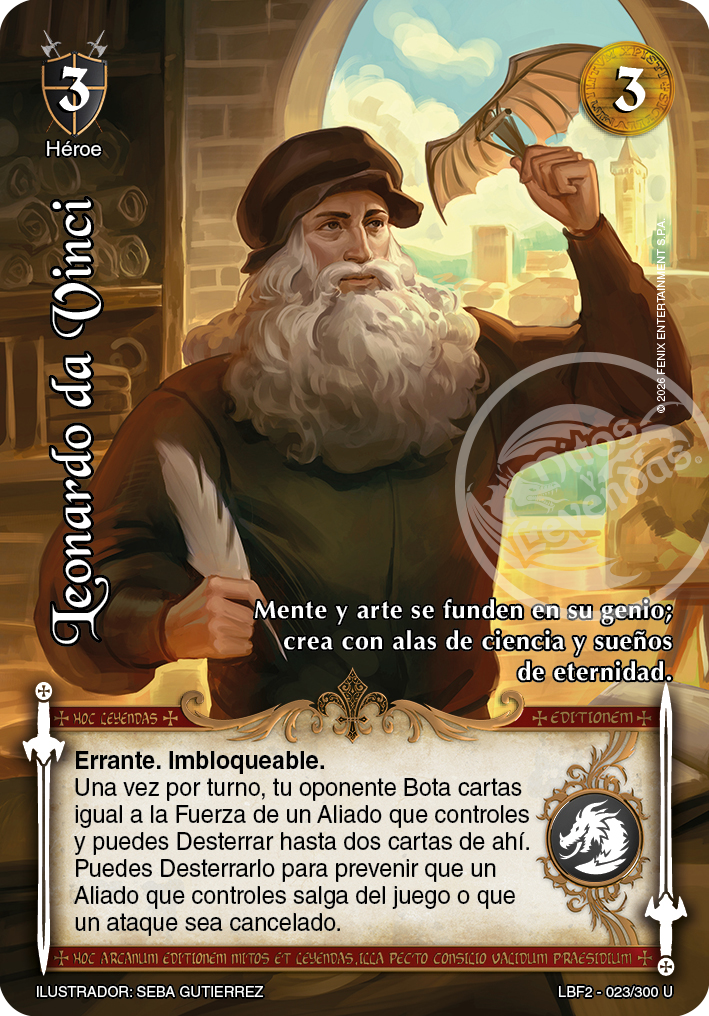 Por ultimo, el capitán de los Héroes es Leonardo DaVinci quien, por si no lo vieron, les dejaremos en su versión Ultra Real y Legendaria.