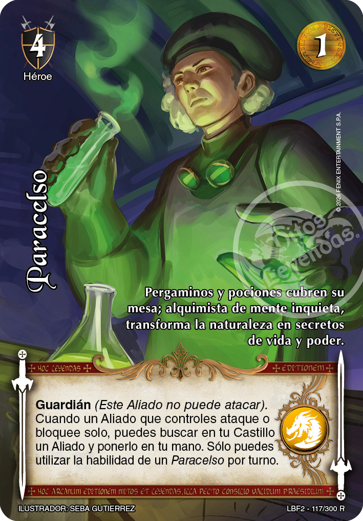 Ya habiamos visto a Paracelso, uno de los motores de búsqueda de Aliados más potentes que se habian visto hasta ahora. Se complementa muy bien con la mecánica del acto heróico (atacar / bloquear con un sólo aliado) y nos va a permitir conseguir todos los turnos un aliado clave.