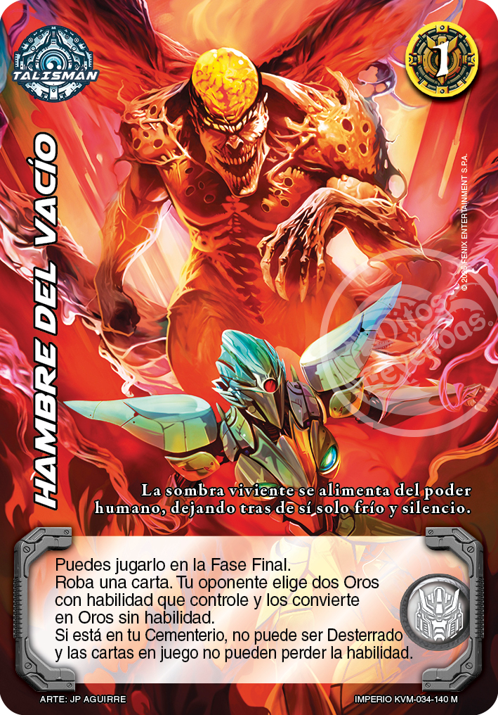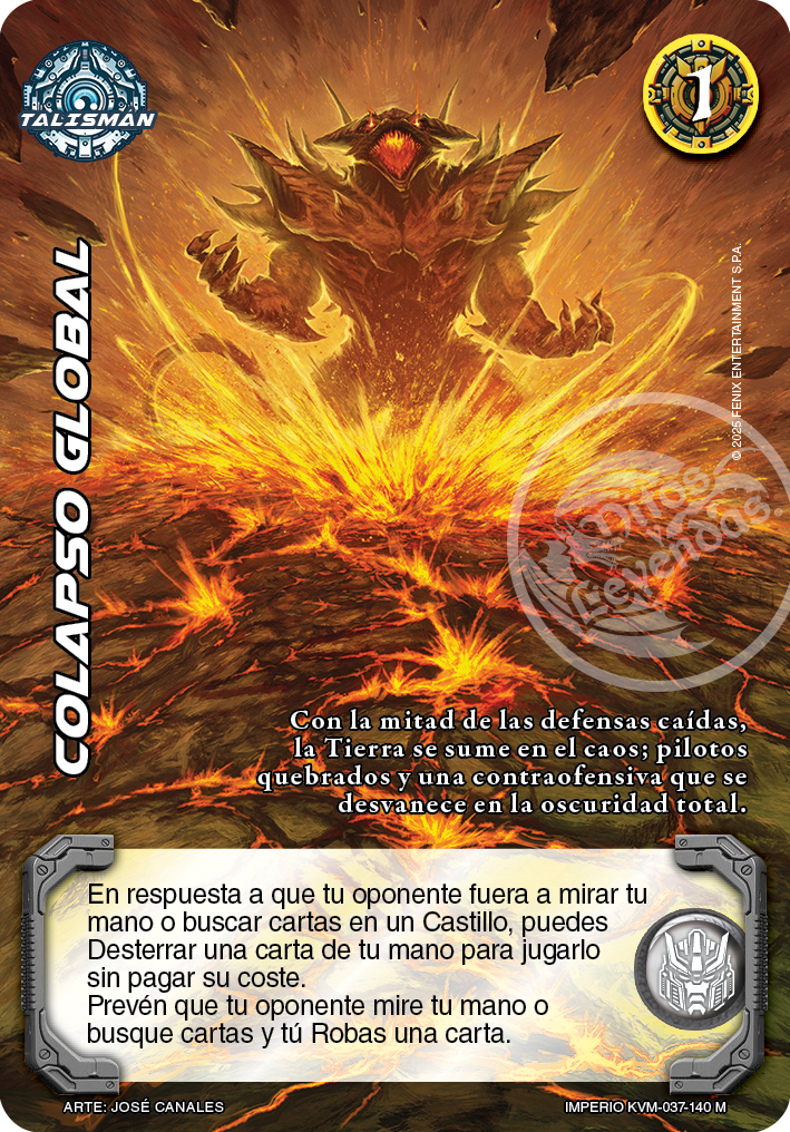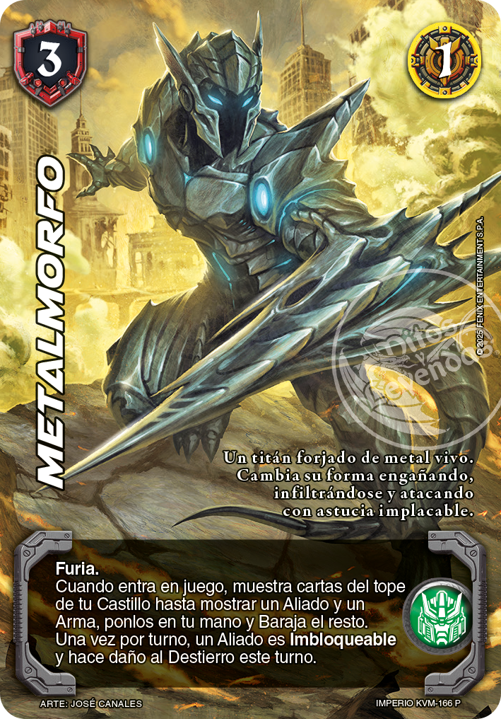 Dentro de de los sobres de Titanes, podrás encontrar una de las cuatro cartas reprint más importantes del Formato Imperio . Estas cartas aparecen en un tiraje muy limitado (1 cada 66 sobres aprox), por lo que algunos pocos afortunados podrán contar con estas exclusivas cartas de colección.