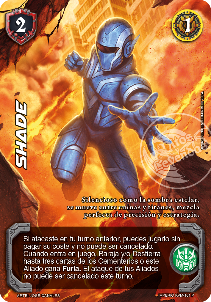 El primer Kit Furia Estelar, nos presenta a Shade, uno de los monjes guerreros Vendel que luchan contra los Titanes, además de algunas otras cartas relacionadas al equipo.