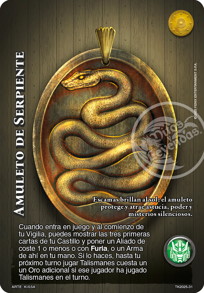 Finalmente llega mi carta favorita. Un Oro que, sinceramente, estoy impaciente por poder jugar. Estoy hablando del Amuleto de la Serpiente. Uno de los problemas que tenía una de mis cartas regalona, Antonio Pincheira, es que Guerrero debía llevar Fuente de la Juventud. Dirás: “tenía que llevar”, porque ahora está Amuleto de la Serpiente, un Oro que te permite controlar la cantidad de respuestas que te genera tu oponente y que, además, te va dando mano selectiva todos los turnos. Una carta que tiene azar, poder y que te permitirá jugar Antonio Pincheira sin ningún problema para poder ganar a lo grande.