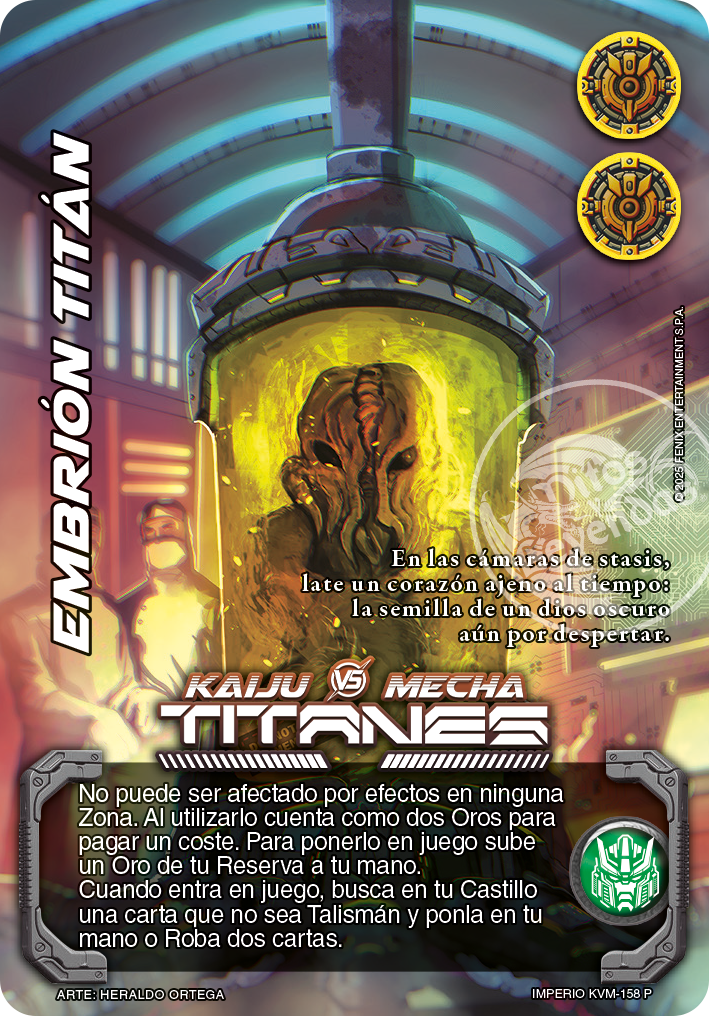 - Embrión titán: ¿Cómo funciona la condición de juego de Embrión Titán de no ser afectado por efectos en todas las zonas de juego? ¿Puede ser usado para pagar cartas de coste 1? Las cartas al cambiar de zona se consideran afectadas. Sin embargo, existen dos excepciones que pueden ocurrir cuando cambian de zona desde una zona privada: