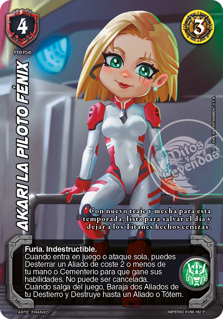 - Akari, la piloto Fénix: El texto “No puede ser cancelada” se refiere a la habilidad que la