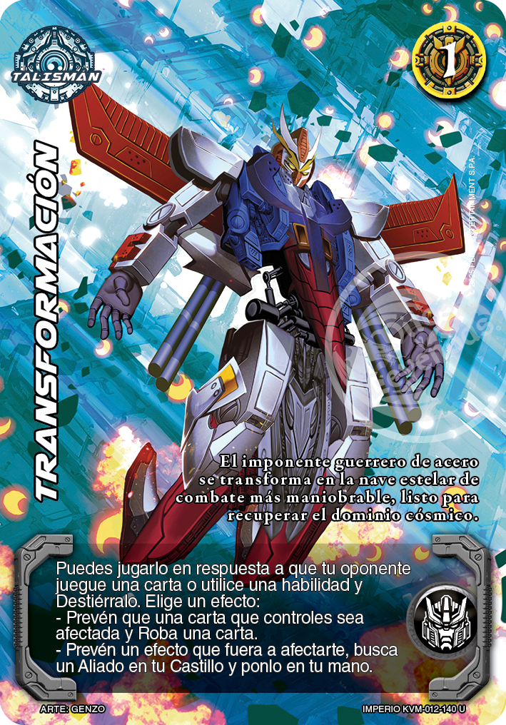 Transformación en su segundo efecto se puede utilizar contra efectos que te afecten a ti como jugador, por ejemplo la carta Kasha, que hace que tú como jugador Barajes tus Aliados, o como Cuervo nocturno que hace que tu como jugador Destierres seis cartas del tope de tu Castillo, previniendo el efecto en su totalidad.